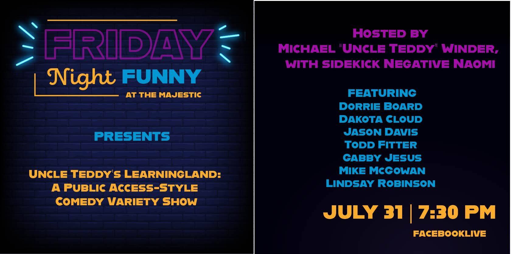 Video on Demand: Uncle Teddy’s Learningland: A Public Access-Style Comedy Variety Show August 4, 2020Uncle Teddy’s Learningland: A Public Access-Style Comedy Variety Show July 31 @ 7:30pm Facebook Live Content: Appropriate Audiences...1 min read