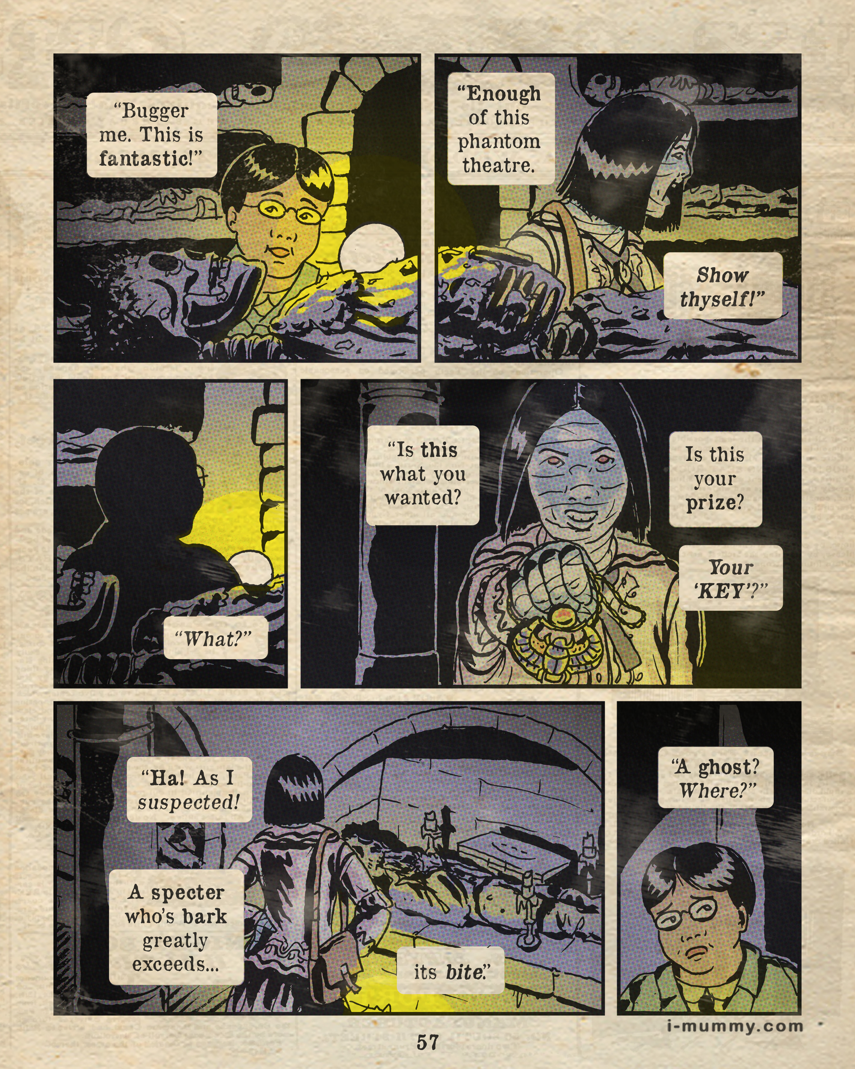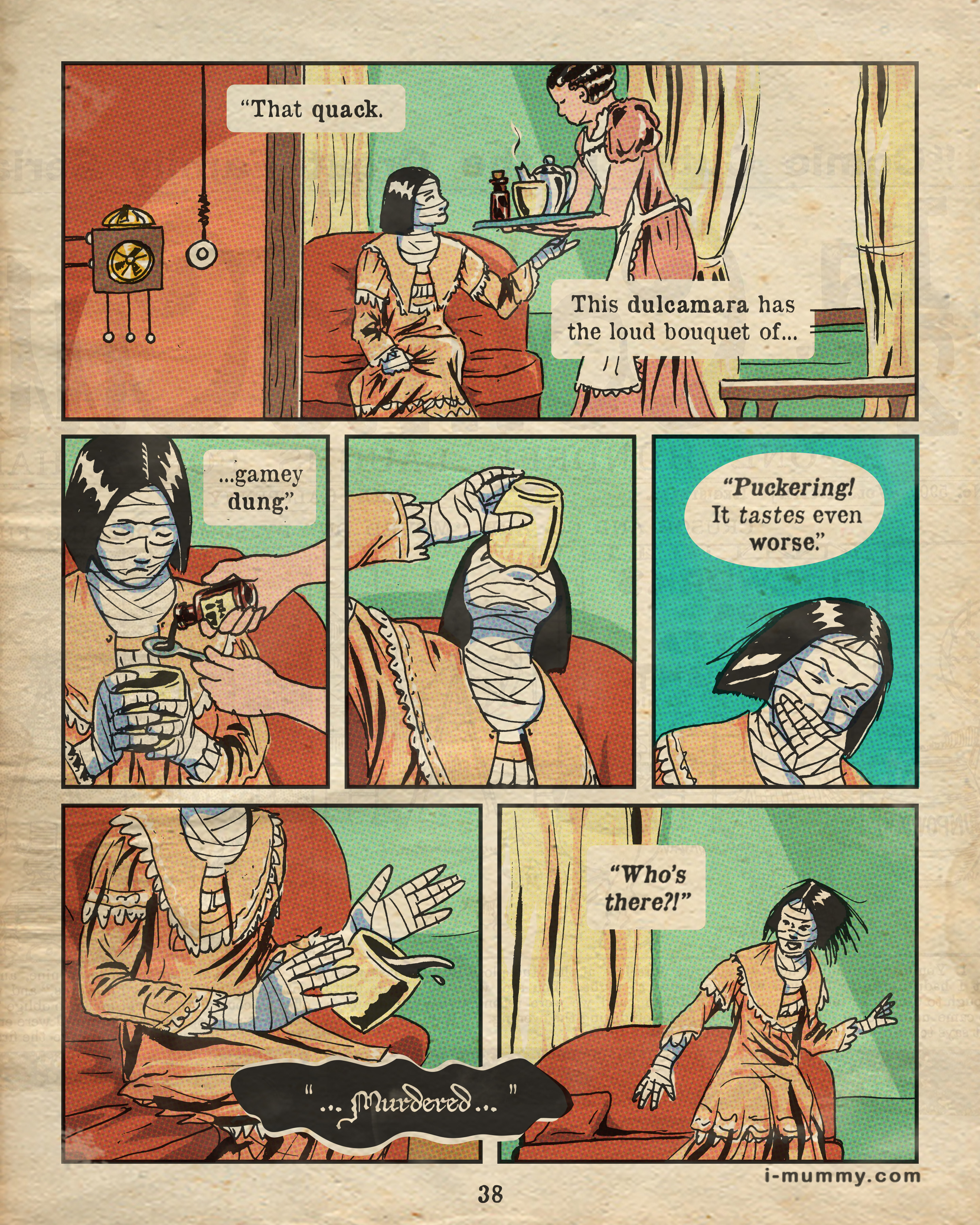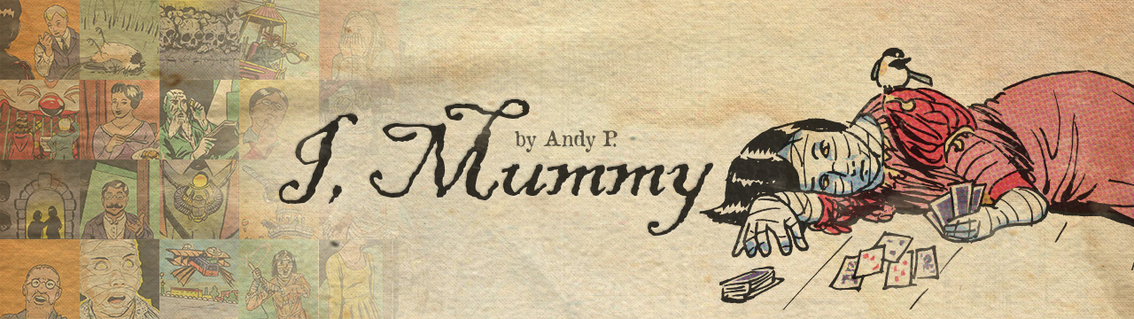 Hoisting the work itself up even higher, the website (http://i-mummy.com) boasts new page releases on Mondays and Thursdays, as well as a comments board for each page, fan art, character summaries, and more. I’d like to especially highlight the dictionary, which contains all of what Purviance calls the “delicious” antiquated words and phrases in the story.