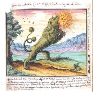 Some cultures have encouraged noise to scare away whatever demon or animal had swallowed the Sun. Tibetans have described it as a dragon, Egyptians as a serpent, and for the Cherokee, it was a frog. European alchemists depicted a lion eating the sun. Among Hindus, the severed head and torso of the demon Swarbhanu did the swallowing.