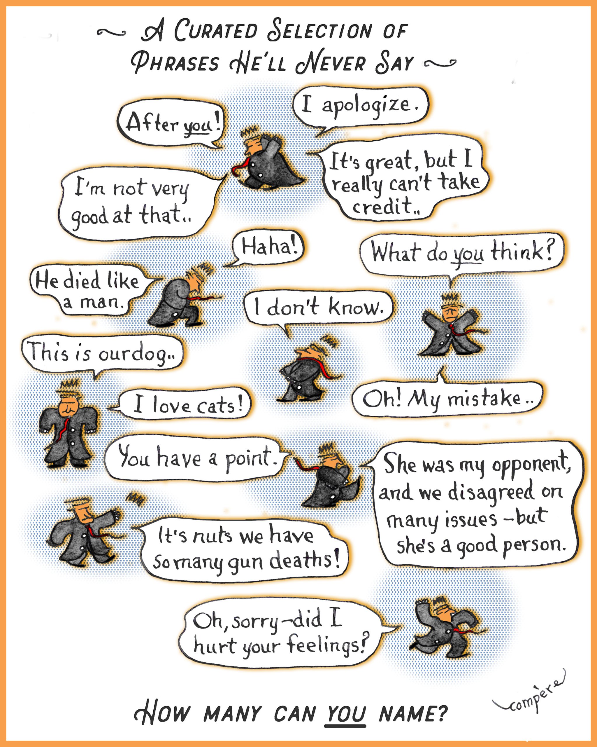 Cartoon: Phrases ‘He’ll’ Never SayNovember 28, 2025From Corvallis cartoonist Jack Compere.Do you have a story for The Advocate? Email editor@corvallisadvocate.com