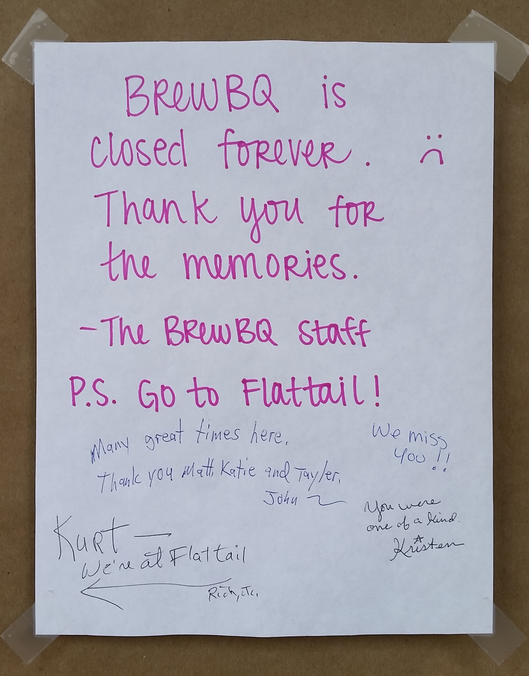 Brew BQ ‘Closed Forever’ March 16, 2016With papered-up windows and a handwritten sign hanging in the front door informing patrons that it’s “closed forever,”...1 min read