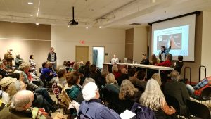 Weber encouraged audience members to contact the Oregon Department of State Lands to block permits for the company building the Jordan Cove pipeline. The comment period ended Sunday, Feb 3, a few days after the event, and Weber stressed that if the department blocked the permits, not even federal regulators could overrule them. Similarly, Miller said that citizen presence at city meetings really makes an impact, even just by fact of attendance. He said CAAB needs groups around the city to come to the board and make themselves known, to help build a network of resources and contacts.
