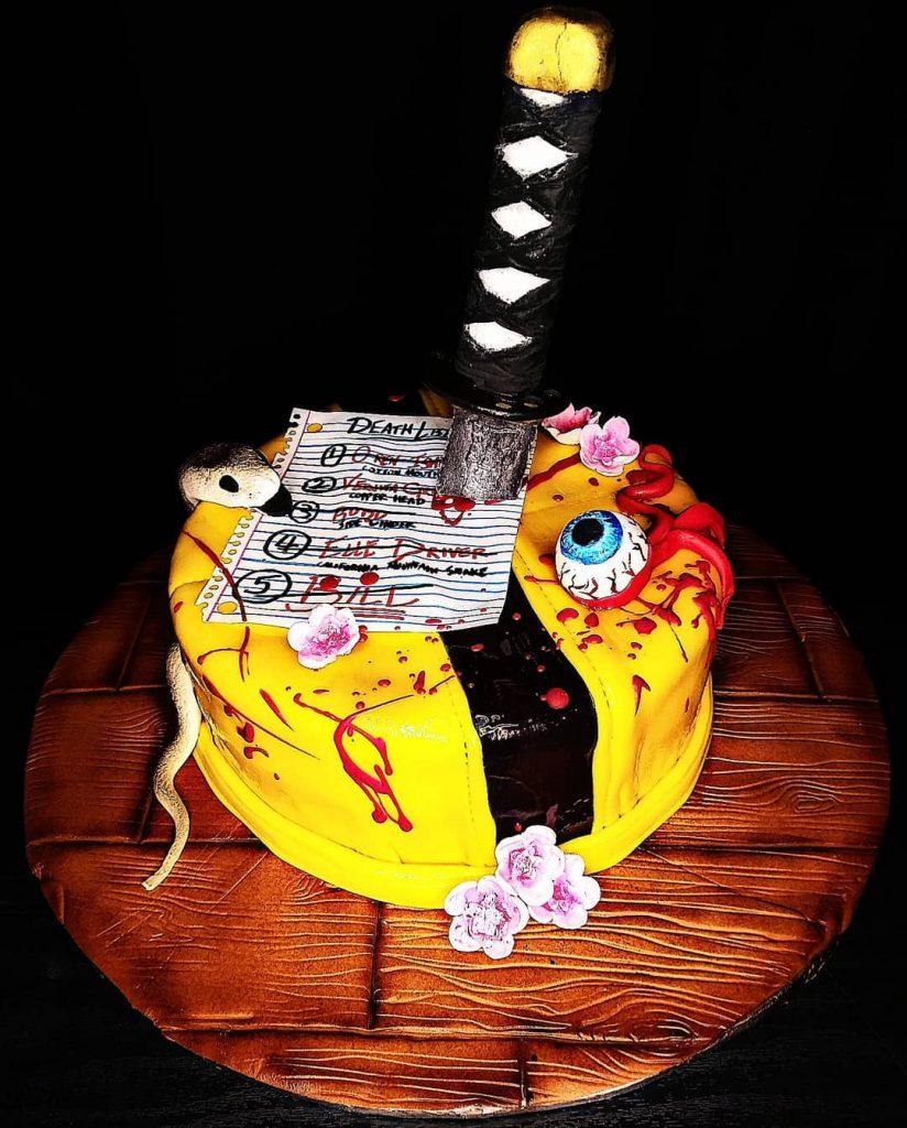 Paul’s cake style is inspired by his interests in horror movies, gore, and rock music. His favorite cake he has ever made was based on Quentin Tarantino’s Kill Bill movies – including the Bride’s death list and one beautiful blue eyeball.
