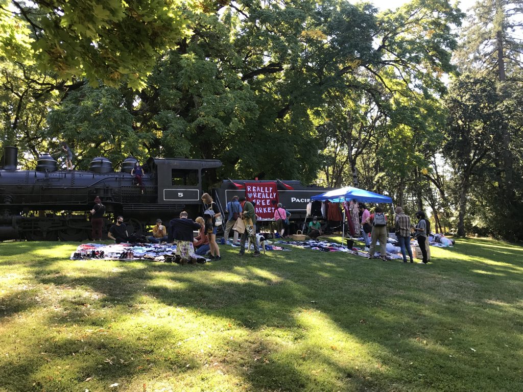 The Corvallis Really Really Free Market — initially started by local activists Johnny Calderon and Dylan De Honor — has, for the last several months, been gaining traction within the city as an entirely reciprocal, community-led and -centered space where resources are freely given and shared with others. In the form of material goods, these include clothes, shoes, hygiene products, toiletries, tampons and pads, boxed and canned food, paper towels, books (including children’s books), toys, and more. Recent gifts have even included emergency supplies like insulin syringes and a bin to dispose of used needles and other biohazardous waste.