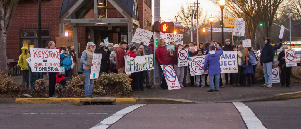 350 Corvallis has held protests in front of banks located throughout Corvallis to demand their divestment from fossil fuel companies and projects. Those who are interested in participating in future protests can contact the group through the Corvallis Climate Action Alliance’s website. In addition, a demonstration will be held in front of the Benton County Courthouse on Monday, June 7 from 4:30 – 6:00 p.m. for members of the Corvallis community to stand in solidarity with the treaty people on the frontlines in Northern Minnesota.