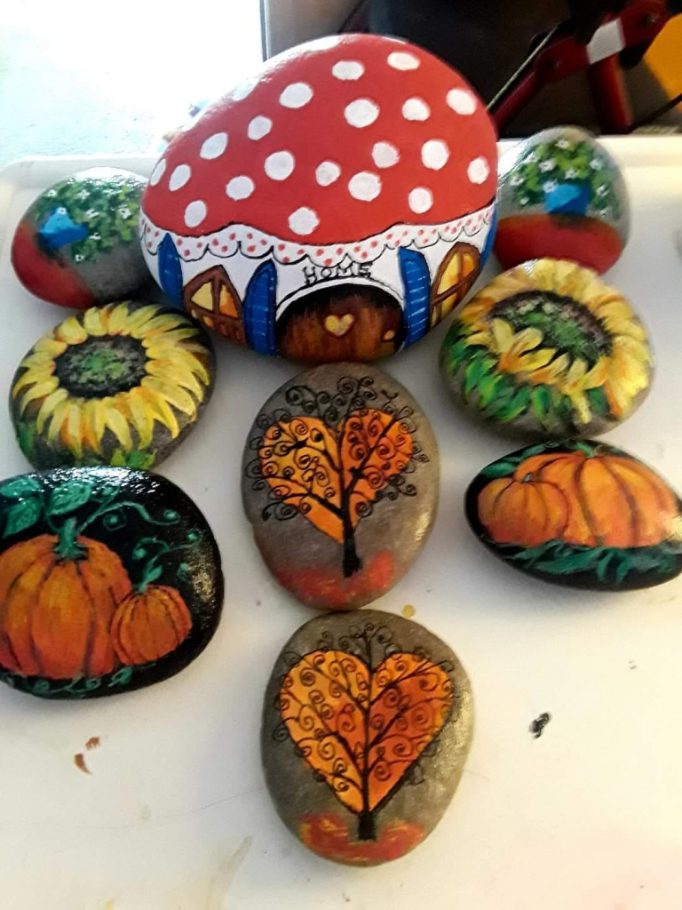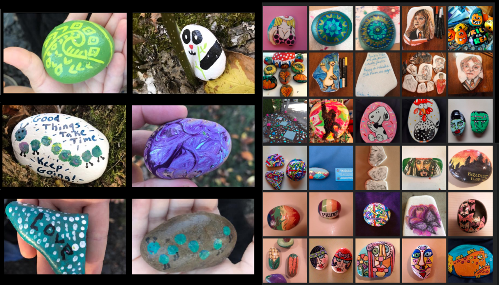 Once you’ve started noticing painted rocks, you’ll begin seeing more of them, like Easter eggs, all year long. They’ll be decorated with all sorts of designs – images out of popular culture like Hogwarts or Westeros characters, figures and symbols from mythology, flowers and animals, abstract designs and cultural icons.