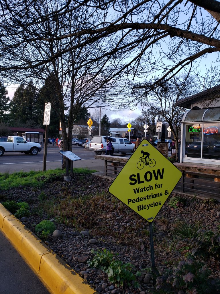 After Daniel’s death, ODOT and Corvallis installed temporary signs to further raise awareness of the crossings where pedestrians and bicyclists share the road.
