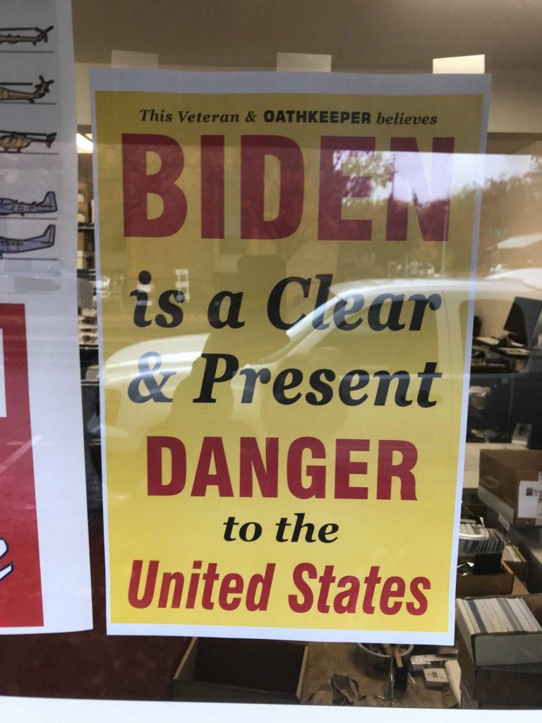 Another sign on Hamilton’s window read “Biden is a Clear & Present Danger to the United State.” As a Vietnam veteran, he was troubled at the situation left behind in Afghanistan when President Biden pulled our forces.