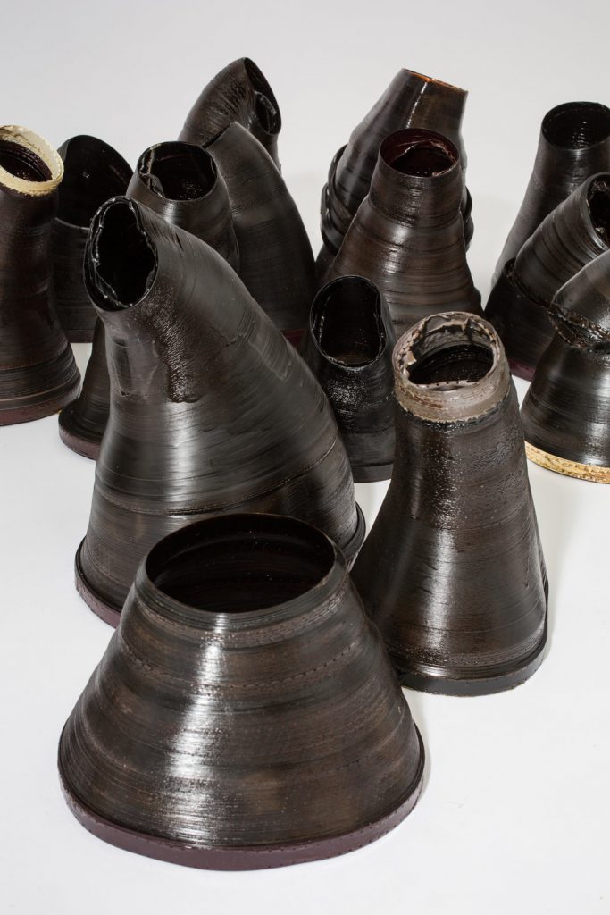 Mallory’s work addresses ideas of interference and disruption in long-established systems of nature and human culture. The Portland-based artist works in mixed media sculpture, using a variety of materials, including cloth, fiber, beeswax and found objects. She creates multiple forms joined with crude hardware that imply tenuous connections or repairs.