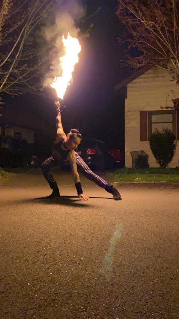 Radiance Works is her performance name. For nearly 17 years, Smalley has been entertaining crowds with stilt walking, fire-eating, and more recently, belly dancing. This summer, she is performing socially-distanced fire shows at a discounted rate for Corvallis and Albany residents.