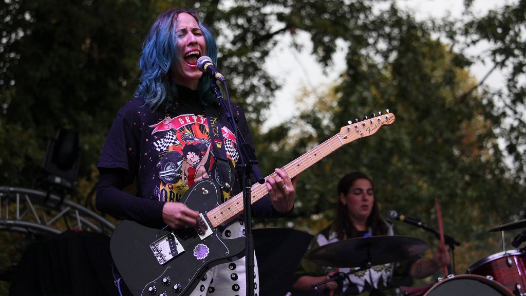 Brooklyn-based Thick opened the show. This all-girl, feminist punk band rocked the stage with songs from their debut album — 5 Years Behind. The title track speaks for the vibe of being free to gather again as they belted out “I feel so overwhelmed.” Perhaps the song “Mansplain” best captured the band’s tone, as the trio bounced across the stage to the words “Thank you for explaining how to play guitar.” Closing with a lyric of “I’ll always be a loser” was ironic, as these young women seem to have a bright future.
