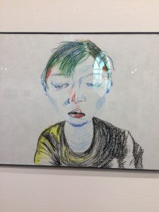 Eighteen artists came together to display work from across the globe, from Europe, South America, Asia, the Middle East, and South Africa. The show takes up all of the main gallery, the walls covered in art ranging from paintings to pencil drawings to one collection of framed miscellaneous family objects titled “Before me… During us… After them,” constructed by Artist and Croatian immigrant, Elly Love.
