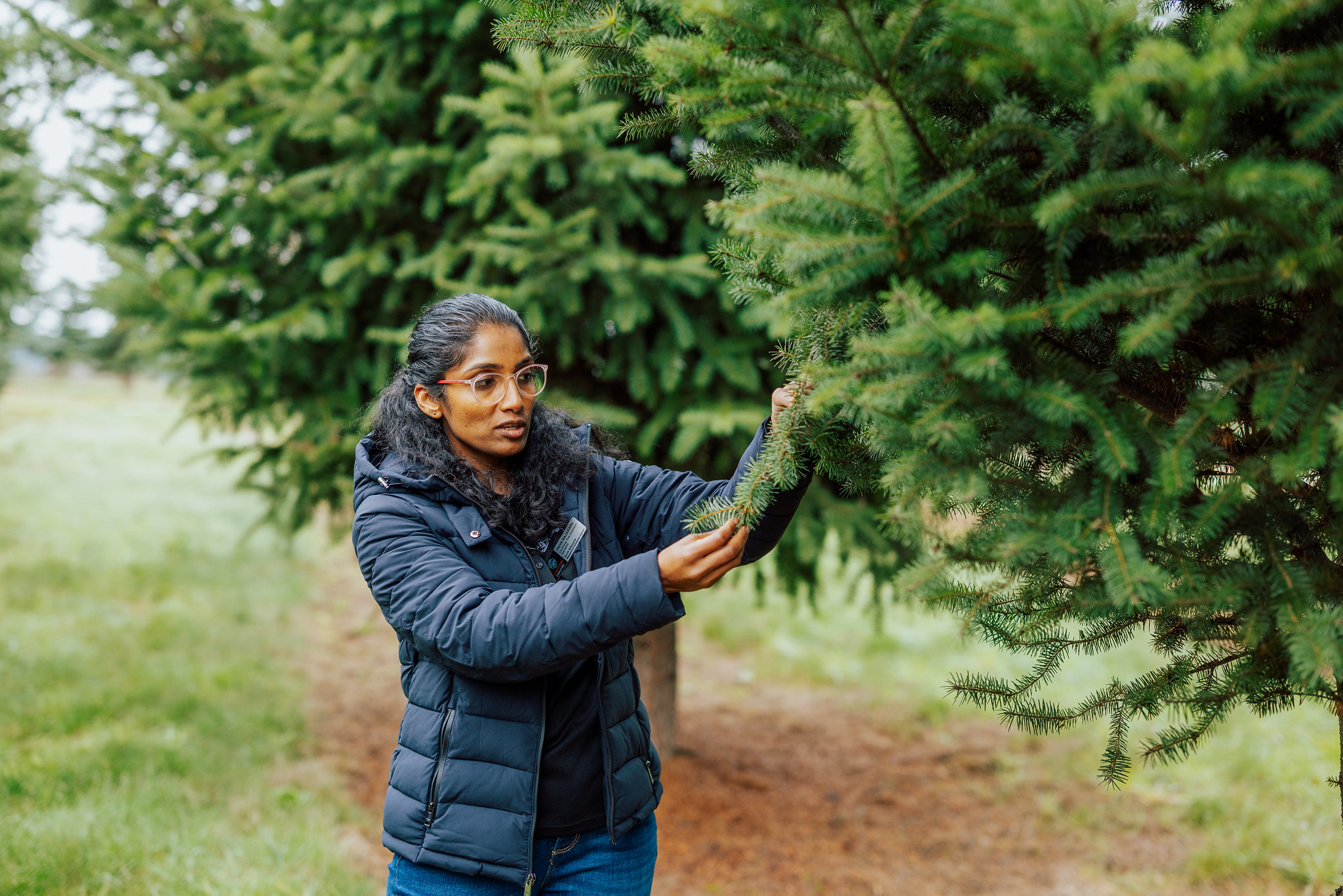 It sounds like the setup for a holiday romantic comedy – Priya Rajarapu works as a Christmas tree expert for Oregon State University’s Extension Service, helping Oregon’s 300-plus Christmas tree growers produce a healthy crop each holiday season so that the state can export millions of perfect trees across the world.