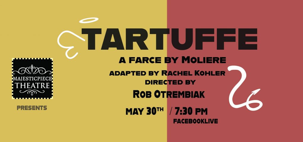 I am so “chuffed” to bring to life one of the greatest and silliest of satires, Moliere’s masterpiece, Tartuffe! In a time when we are all suffering from cabin fever, what better cure than a farce that takes aim at a hypocritical man of privilege, selling a bill of goods in order to enrich himself and increase his social standing? Art imitating life! If we didn’t laugh, we’d cry! I’m looking forward to a rollicking good time with some stage talent who have comedy in their veins and an impish glint their eye! The genius of Moliere, adapted by our resident versifier Rachel, in iambic pentameter and rhyming couplets! Together we will share some smiles with a world desperately in need of a good laugh!