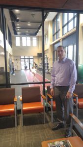 Walking into Samaritan Athletic Medicine Center, it’s hard to tell if it is a medical clinic or a gym. To the right are two-story glass windows, featuring an open space with workout equipment on the sides, a small single-line track strip in the middle, and multiple people doing lunges, lifting weights, and running on what seems to be a futuristic treadmill. To the left are offices that continue up the stairs, past the front desk.