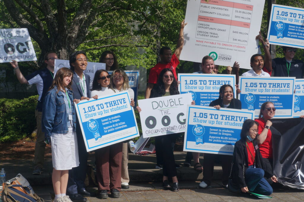 The students called on Gov. Tina Kotek and state legislators to ensure additional funding for several state financial aid grants, including the Oregon Opportunity Grant and the Student Tribal Grant. They want funding for the former to increase from $100 million to $400 million in the next biennium. It is the largest needs-based program the state funds.
