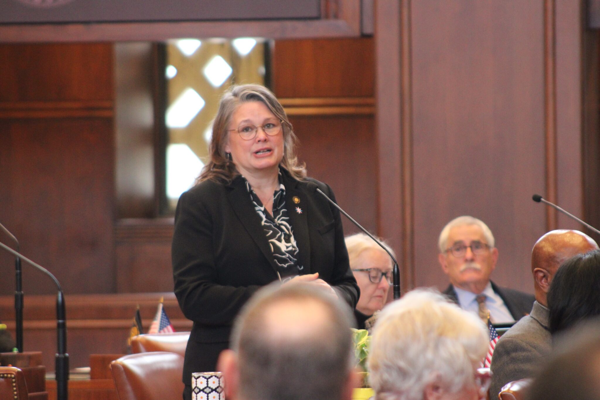 “Colleagues, we have work to do here in Oregon, but we also have to think about that national anthem that we heard just now. That flag is still flying above the ramparts,” said state Sen. Sara Gelser Blouin, D-Corvallis. “It’s a promise. It’s an ideal that we haven’t met yet, and it is absolutely under attack.”