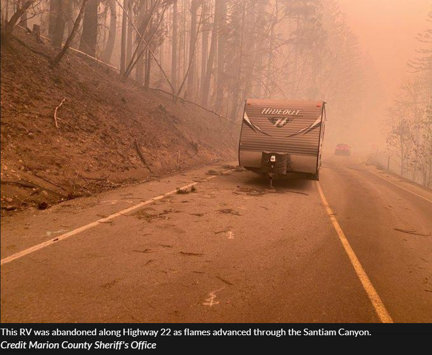 More than 300,000 acres of Oregon land are aflame as a result of low humidity and abnormally high winds, yet another consequence of global climate change. The five teams fighting the largest 35 fires are hard at work, but smaller fires continue to ignite. Under these conditions, efforts to save forest land or even buildings have to be put aside.