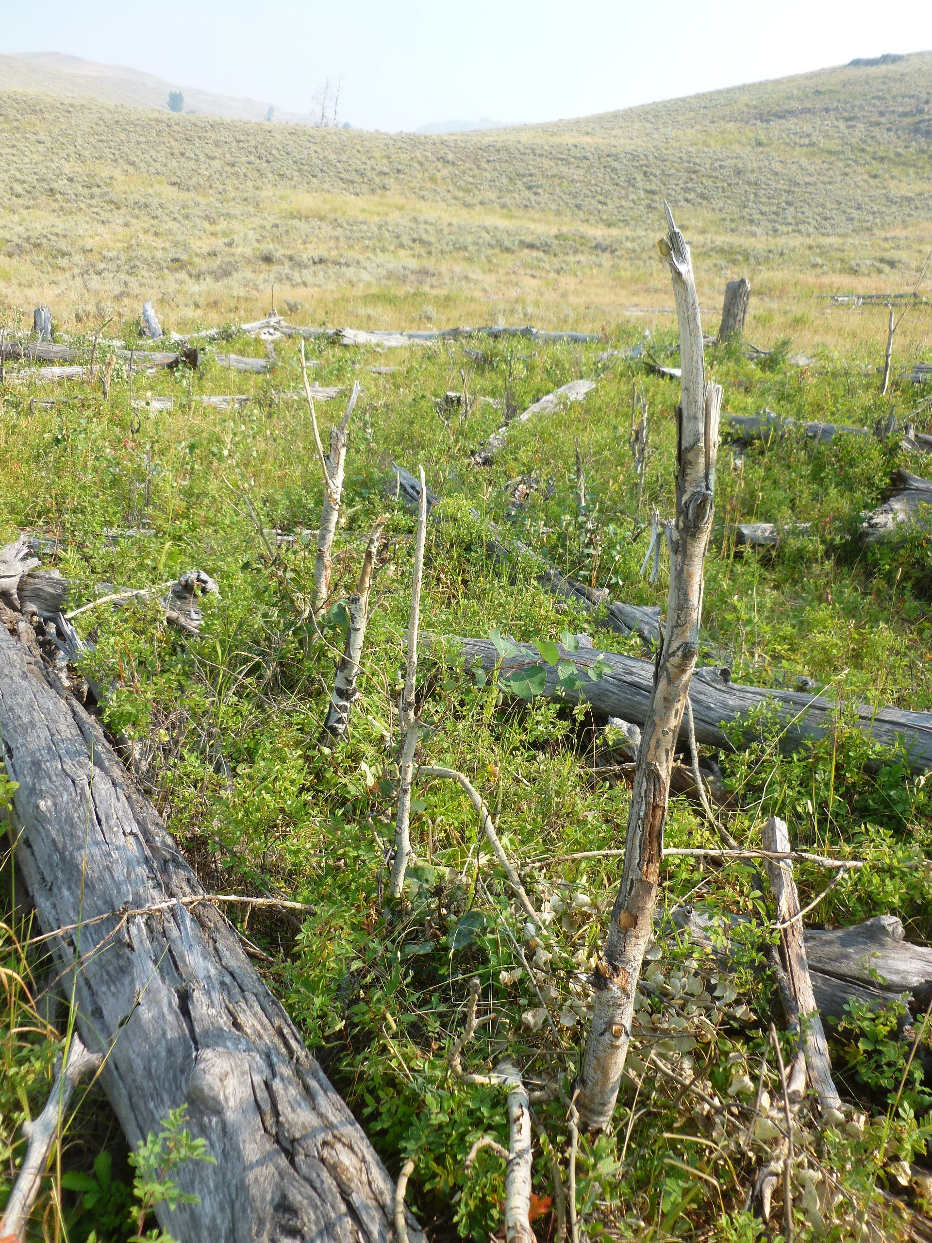 Painter and OSU College of Forestry collaborators Robert Beschta and William Ripple examined a random sampling of plots in 87 randomly selected aspen stands, and 18% of saplings had been broken. They may resprout from their base, but the sapling height has been lost and new sprouts are vulnerable to being eaten by bison or other herbivores, the researchers note.