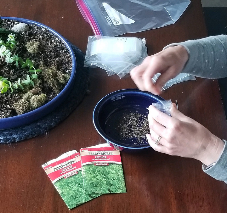 More than 90,000 seeds were donated by Bi-Mart in Roseburg. Four Douglas County Food Hero Extension educators, Cousineau, and Hatfield’s school-aged daughter have separated every seed by hand into plastic baggies.