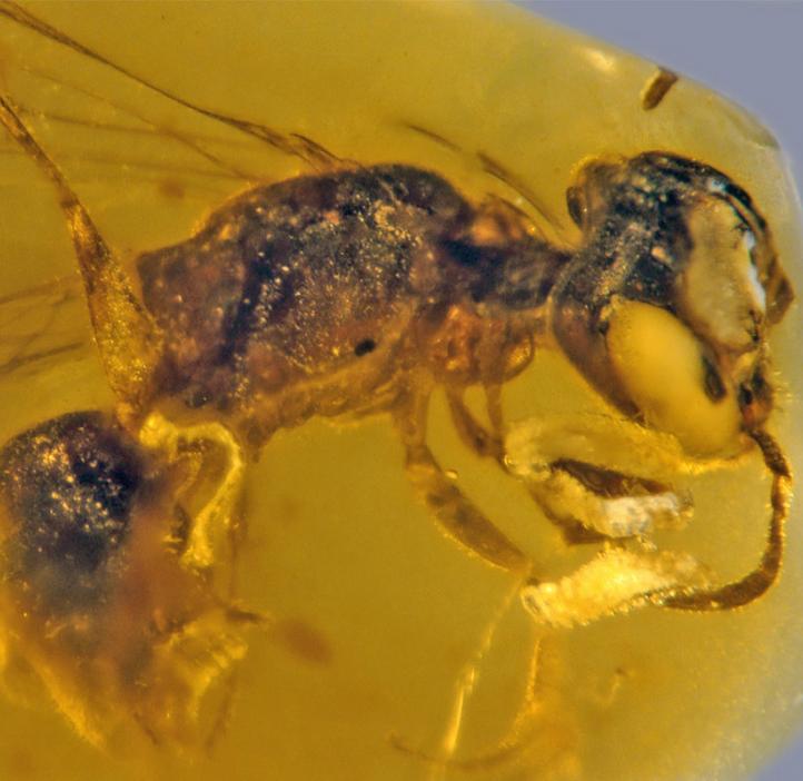“Something unique about the new family that’s not found on any extant or extinct lineage of apoid wasps or bees is a bifurcated scape,” Poinar is quoted. This refers to the antennae base being in two segments. “The fossil record of bees is pretty vast, but most are from the last 65 million years and look a lot like modern bees. Fossils like the one in this study can tell us about the changes certain wasp lineages underwent as they became palynivores – pollen eaters.”