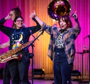 During a recent midday performance, Brooklyn-based all-female band the Brass Queens had the entire Oregon State University concert hall on their feet, jumping and screaming with excitement to hear their cover of Chappell Roan’s mega-hit “Pink Pony Club.”