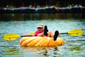 The award-winning event will be in its 14th year and consists of people dressing up in kooky costumes and racing across a lake in giant pumpkins. These pumpkins are provided by the Pacific Giant Vegetable Growers and their members year after year. To learn more about them check out their website here: http://www.pgvg.org/ .