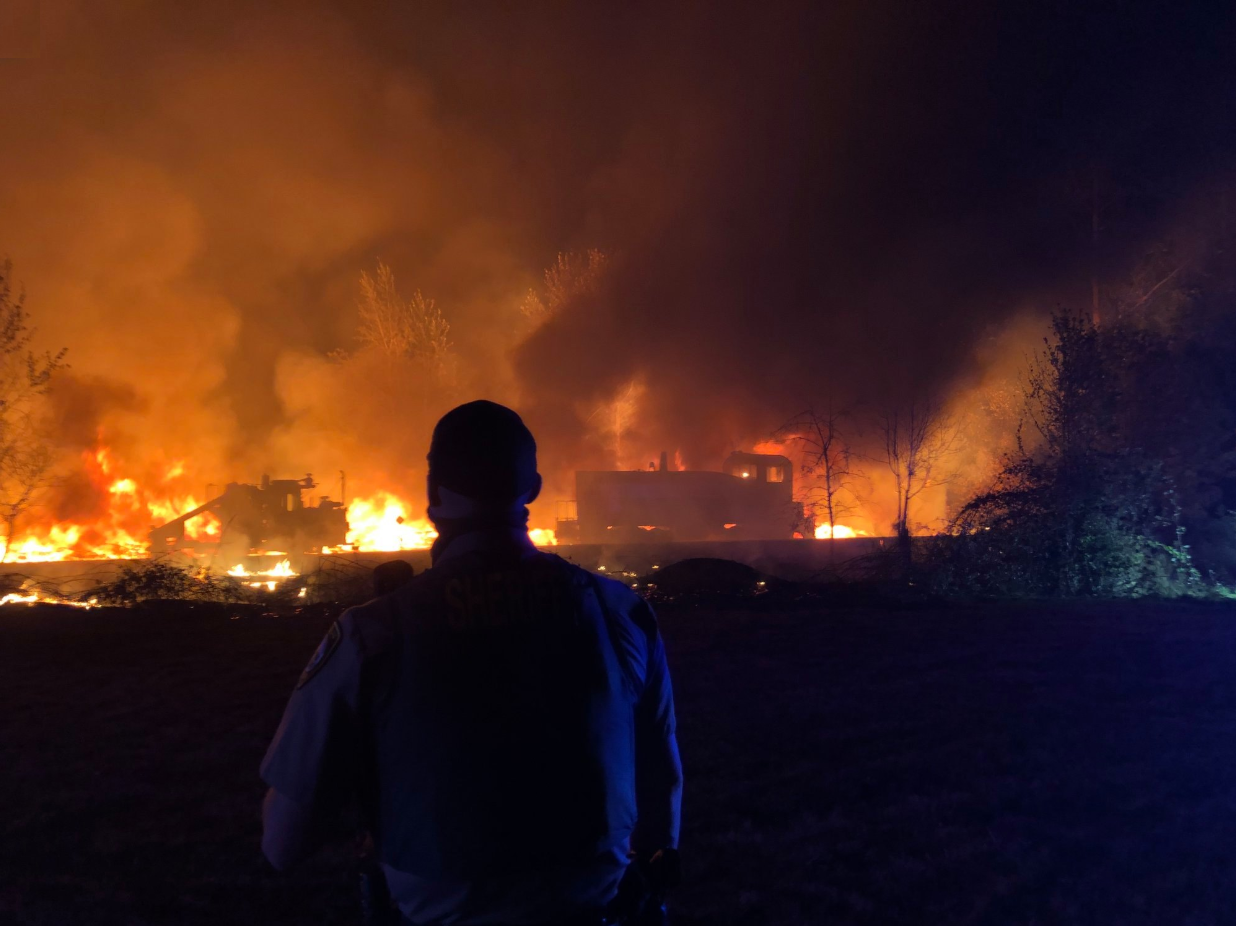 On Monday evening, most of Clackamas County remained under an evacuation order as crews fought four fires: in Oregon City near Redland and Potter Road, in the Colton area near Unger Road, in the Molalla area near Wilhoit and Bird Road, and at Beachie Creek. Most county residents have evacuated, but a few intend to defend their homes against possible looters, setting up hastily-made signs bearing dire warnings for anyone approaching.