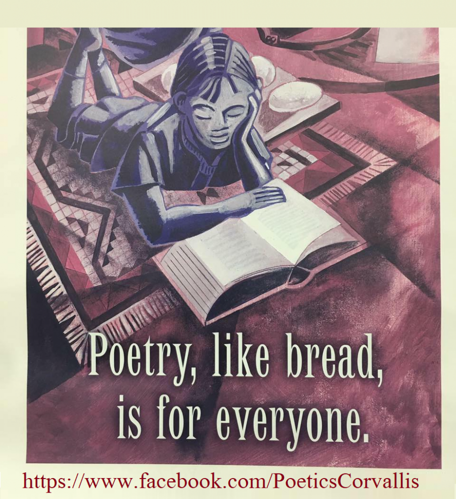 The Salem Poetry Project is hosting a special online event showcasing Poetics Corvallis on Thursday, Jan. 7 at 7:00 p.m. Each weekly SPP event opens with a featured reader, which this week will take the form of a half-hour reading by Poetics Corvallis – an open reading run by Corvallis arts community, after which others are invited to recite three poems or to read for five minutes, whichever comes first. Interested parties should contact Marc Janssen at the Salem Poetry Project Facebook page.