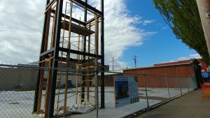 Both the owner of the lot and the general contractor on the project is Alan Ayres, architect of the Sky High Brewery building. There is currently what appears to be an elevator shaft standing at the construction site, and a posterboard detailing the features of the new building: 98% of construction materials and packaging will be reused or recycled, 75% of the materials will be sourced from within 30 miles, and 80% of the labor sourced from within 2 miles.