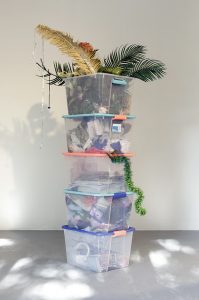 For some context, you should take a look at http://shawncreeden.com. His award-winning sculpture and installation work (2017 Arlene Schnitzer Visual Arts Prize, International Sculpture Center’s 2018 Outstanding Student Achievement Award) is rooted in the collection of objects and materials, coalescing into a vision of a potential post-human future. Large, organic-like structures blend hyper-synthetic materials with living plants, each radiating an outlook that is unshakingly hopeful, bleak, and  hilarious. The essence of these works came alive a short while ago with Portland Tropical Gardens (PTG), a temporary collaborative project in downtown Portland that stood from February 8 until June 10 of this year. Creeden’s primary role was lead horticultist; spelling intentional.