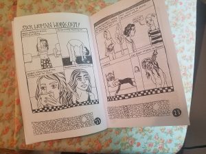 The zine includes photo-copies of Pedersen’s cursive penmanship and some typed portions – and readers are bound to catch a spelling error or two. But let that be refreshing; Without espousing perfectionism, Pedersen presents a relaxed, realistic frame of thought, similar to her drawing style.