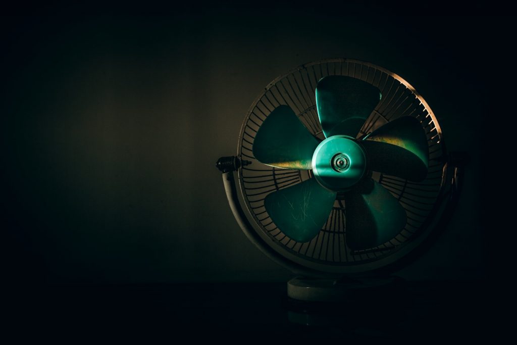 Regular indoor fans, like all motorized equipment, disperse heat in the surroundings when operated while simultaneously providing a breeze directed ahead. The breeze speeds evaporation of the moisture from skin and thus cools it off.