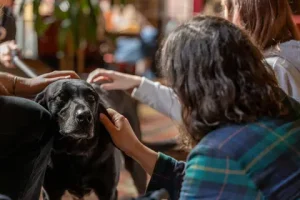 Research shows that petting a dog for even a few minutes can reduce stress and increase levels of oxytocin, frequently nicknamed the “love hormone,” inducing feelings of bonding and calm.