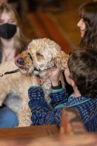 During Paws to De-Stress events, when there’s a long line, CAPS staff limit visitors to five minutes before they need to get back in line and give someone else a chance, but when it’s not busy, visitors can pet the dog for as long as they want. If someone is clearly in need of extra dog time, Webster-Henry said, staff members don’t rush them.