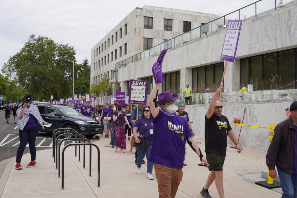 Service Employees International Union Local 503, which represents about half the state workforce, is behind that push and negotiating for a new contract for state workers. The union announced the move in a rally with more than 1,000 workers across from the state Capitol. Meanwhile, inside the Capitol, Republican senators on strike kept the Senate from working on Thursday, as they have since May 3.