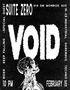 VOID. Suite Zero, 314 SW Monroe Ave., Corvallis. 10 p.m. $3. They back and bringing dark underground vibes. Visit https://www.facebook.com/events/181286796436765/ for more info.