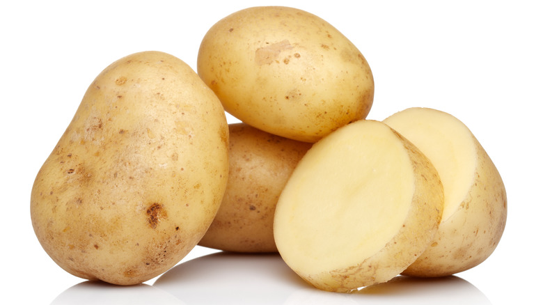 Raw potato – White potatoes belong to the nightshade family, like tomatoes, eggplants, and bell peppers. And while potatoes, tomatoes, eggplants, and bell peppers all contain solanine, raw potatoes have higher concentrations. Cooking potatoes reduces the amount of solanine, making them safe for most dogs to eat in moderation.